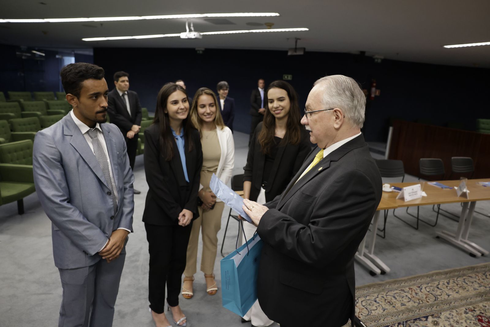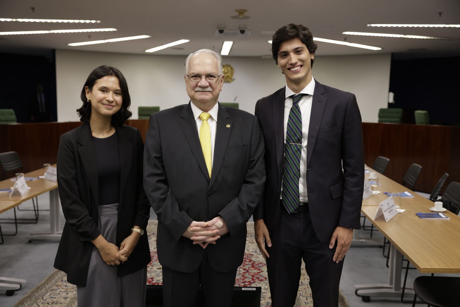 Em uma cerimônia agradável e descontraída, o Dr. Luiz Edson Fachin, conversou com todos os alunos para conhecer um pouco da trajetória acadêmica de cada um. Em seguida, parabenizou os alunos da UFLA – Universidade Federal de Lavras, UERJ – Universidade Estadual do Rio de Janeiro, e FGV-RIO – Fundação Getúlio Vargas do Rio de Janeiro, pela conquista do primeiro lugar nas provas da Olimpíada do Conhecimento Jurídico.