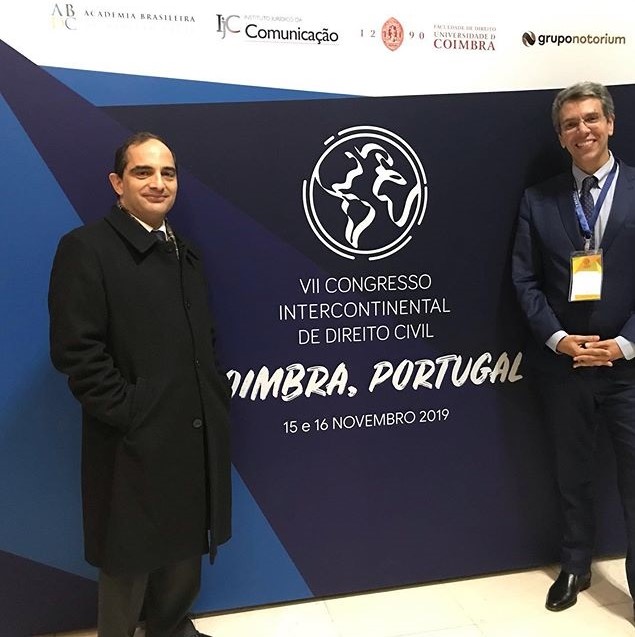 O VII Congresso Intercontinental de Direito Civil em Coimbra, realizado nos dias 15 e 16/11/19, foi um verdadeiro sucesso, sobretudo em seu viés acadêmico. Reunimos as vozes mais importantes da doutrina civilista em Portugal, bem como autoridades diversas do mundo político. A Academia se fez representar pelo seu Presidente Administrativo, Roger Silva Aguiar, e pelos colegas Guilherme Calmon, Melhim Chalhub, além dos acadêmicos associados Rodolpho Barreto Sampaio Júnior, Sofia Miranda Rabelo, Bruno Zampier.