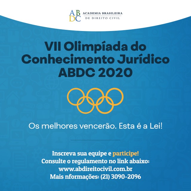 A Academia Brasileira de Direito Civil, à luz da crise causada pela pandemia do COVID-19, decidiu cancelar os editais referentes à Olimpíada do Conhecimento Jurídico 2020, até então publicados.